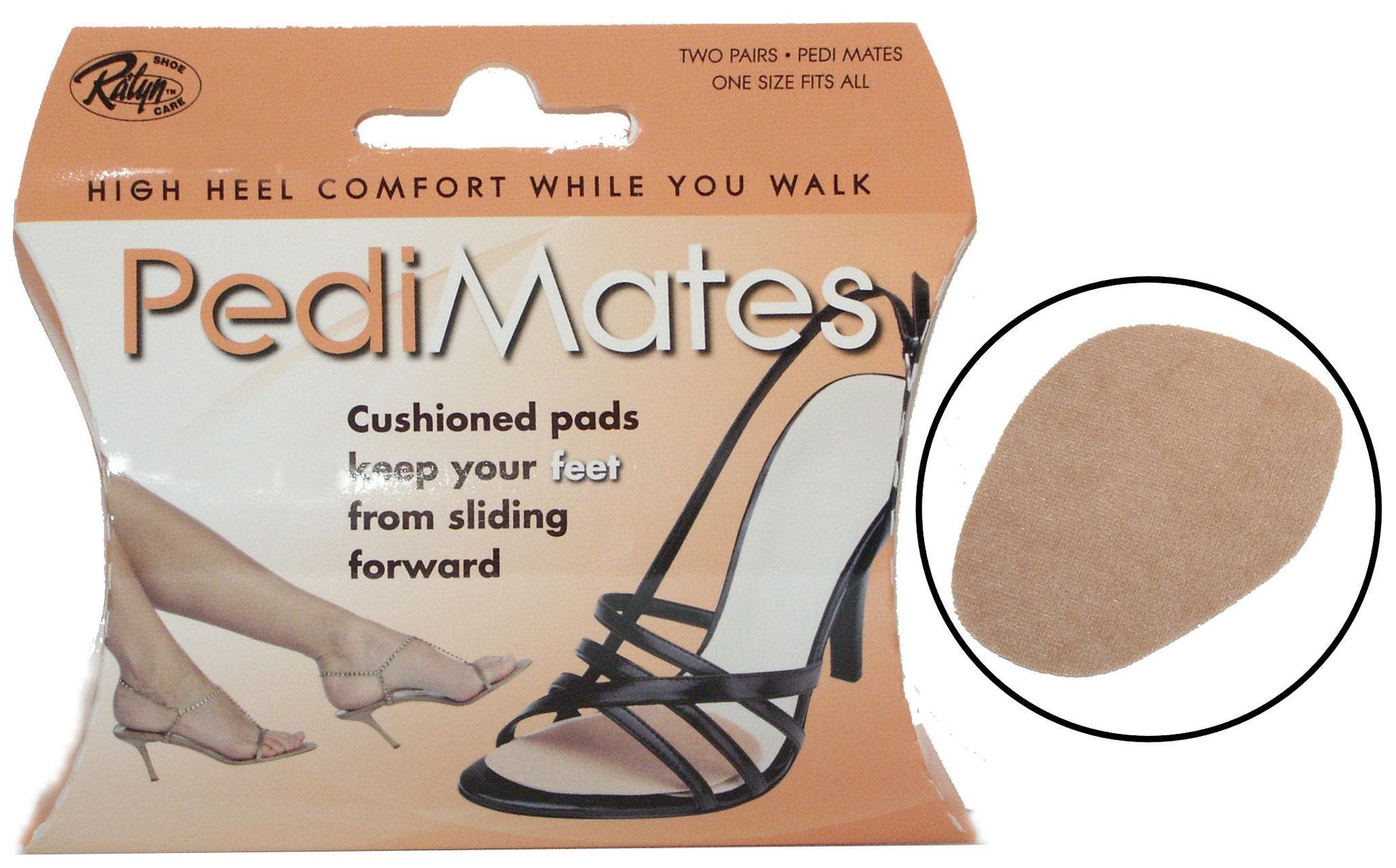 Shock-absorbent cushioned pads keep your feet from sliding forward for a more comfortable fit. Ideal for mid and high heel shoes. Smooth molded edges will not snag hose.