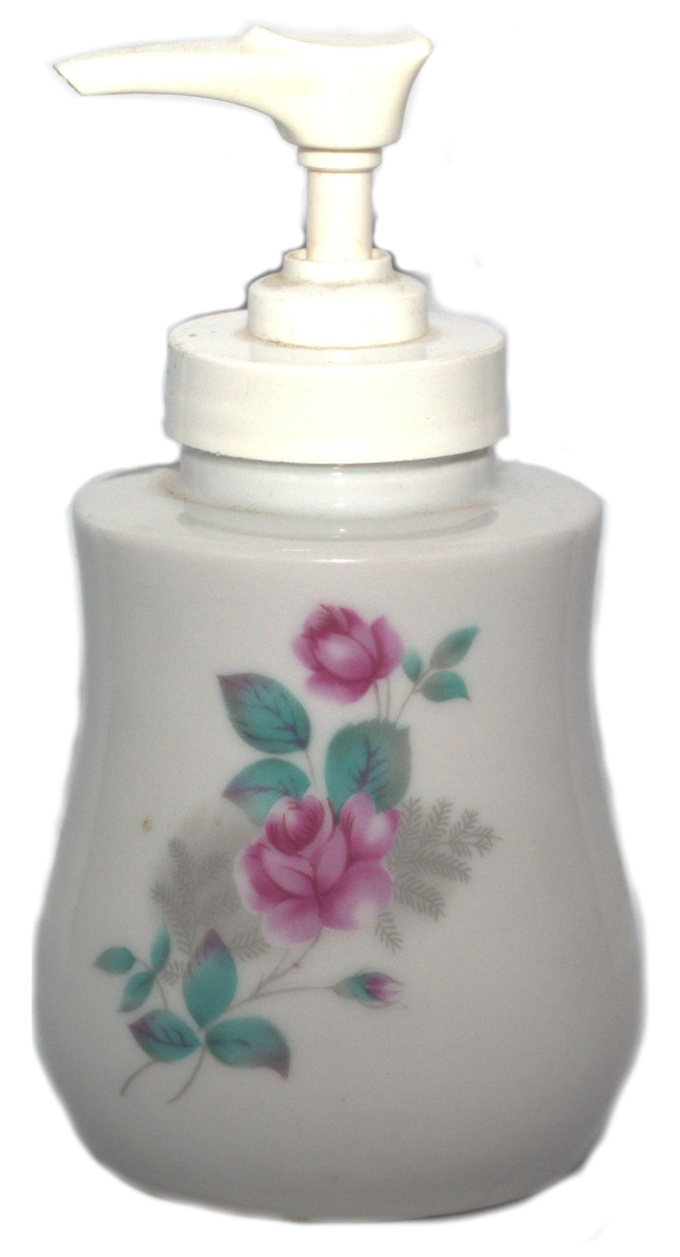 Decorative flowery bottle. Can be used to store liquid lotion and hand wash.